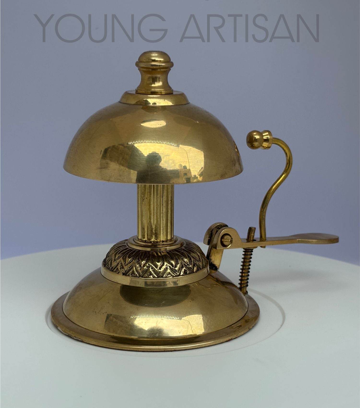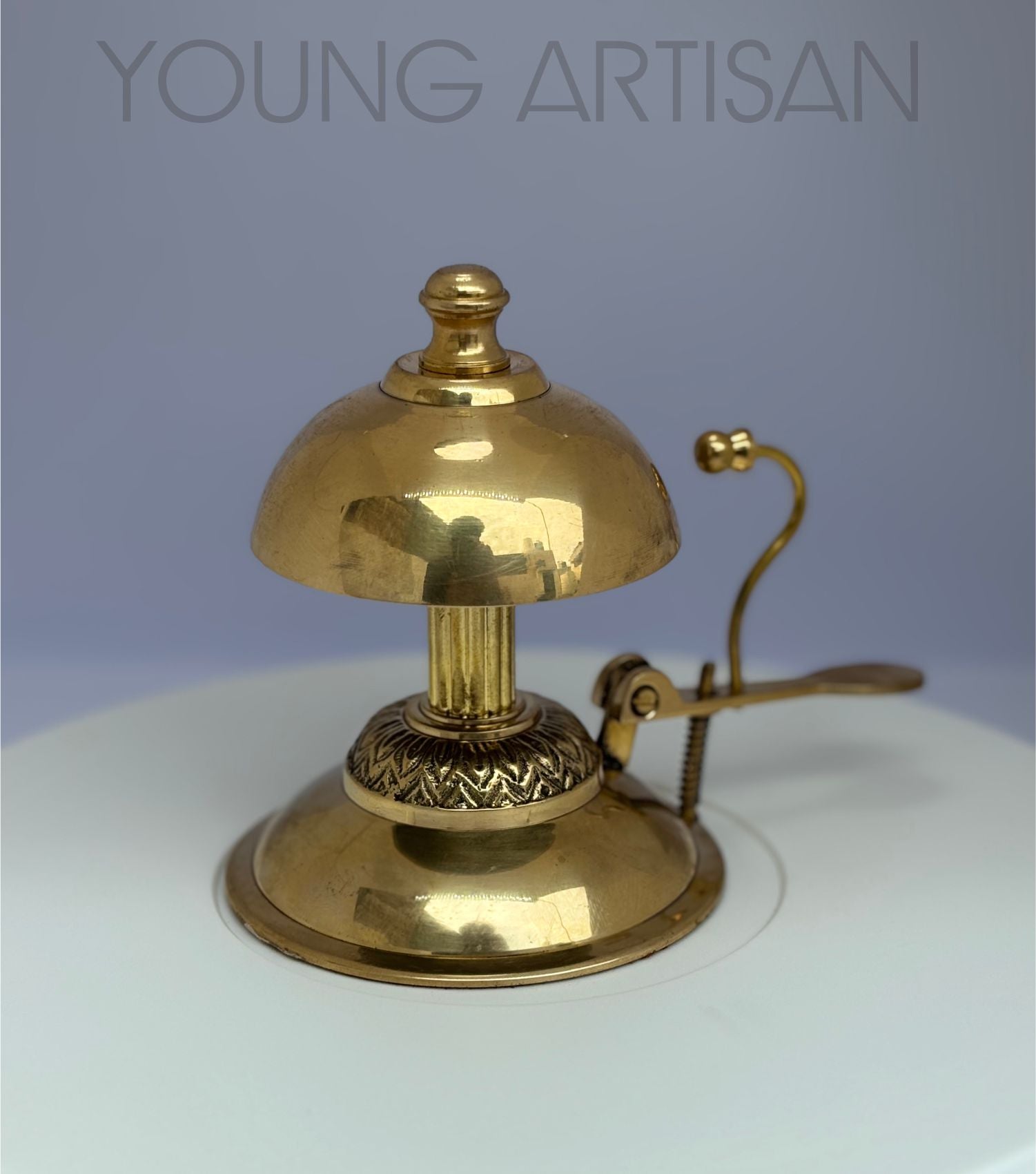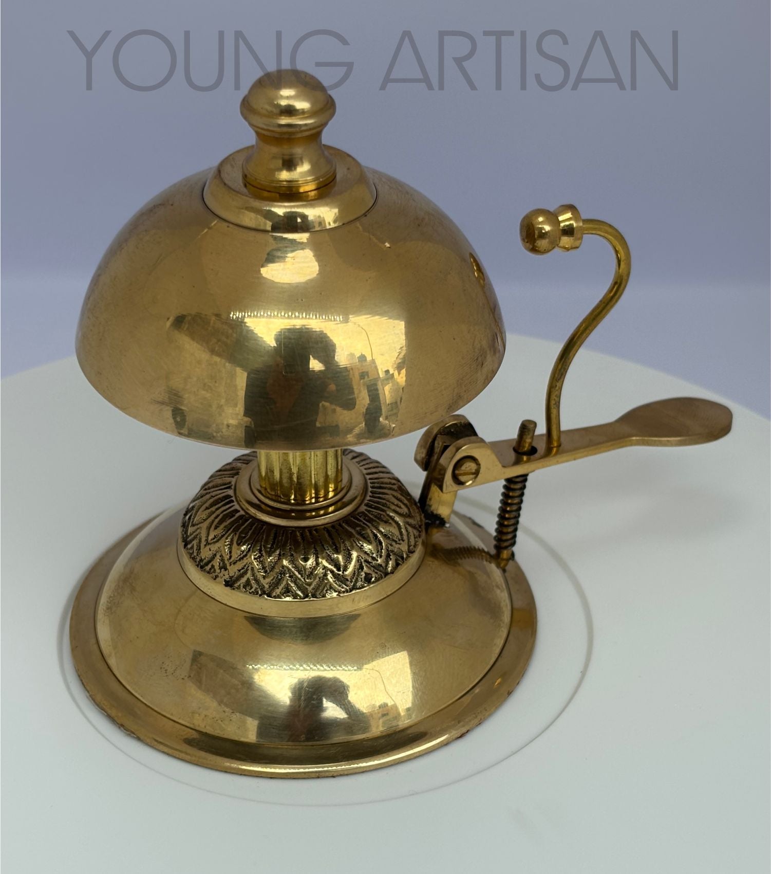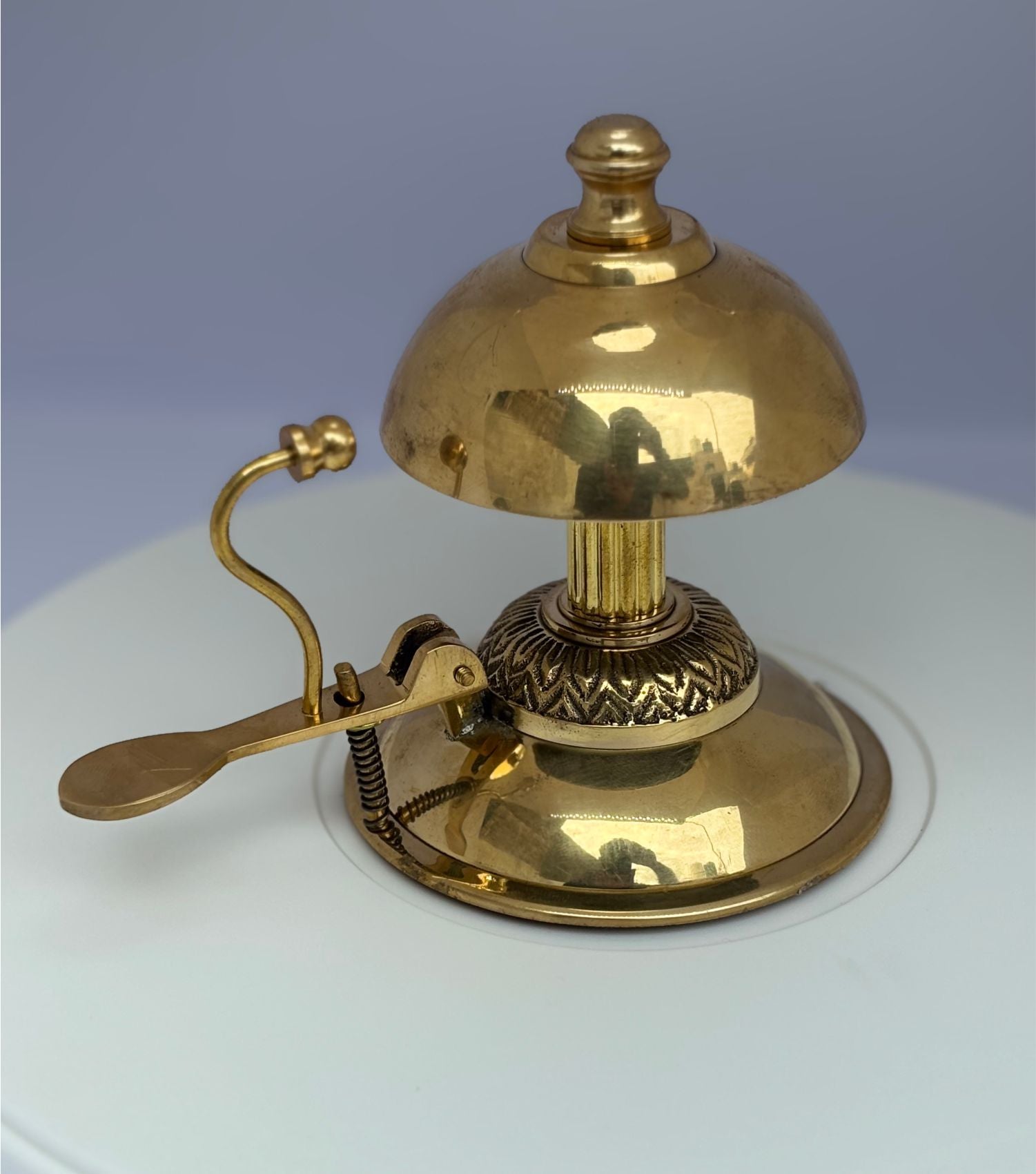 Antique Brass Desk Calling Bell 5" | Vintage Hotel Reception Bell | Office Service Bell | Handmade Collectible Counter Bell